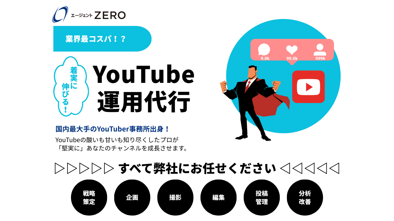 お客様のYouTubeチャンネルをトータルサポートいたします。